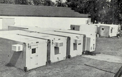 This was June and I found the weather to be HOT and DRY. Temperatures in the low 100s were not unusual in the early morning and 110 degree plus temperatures in the afternoon were common. The crew spent the next month putting the station together and making the equipment operational. The station consisted of 18 shelters, four 250 KW generators, two pallets, 3 mobilizers, and sets of mobilizer jacks. These shelters were commonly referred to as pinkies because of their color. The lightest pinky weighed about 6 tons and the heaviest tipped the scale at 12 tons.